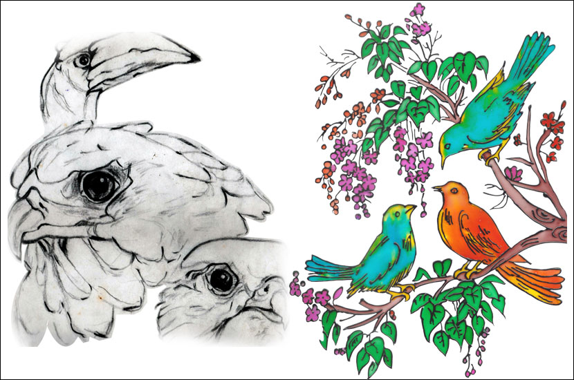 Drawing is a way of making a picture. Drawings are created by making lines on a surface. Long lines make up the shapes and small lines make the textures. Drawings can be images of real-life or abstract images showing ideas that cannot be seen in the real world. All art and techniques are characterized by an emphasis on form or shape rather than mass and color as in painting.